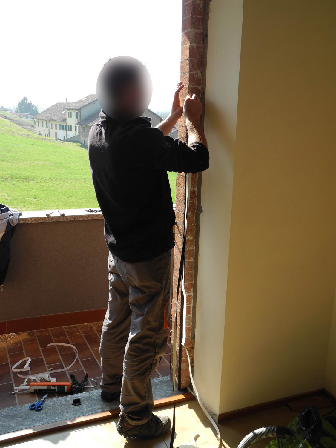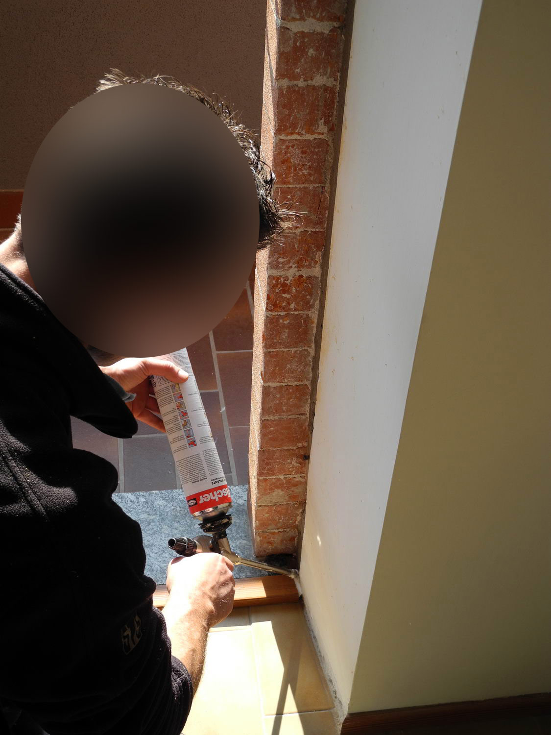 Installazione del nastro autoespandente per garantire l’isolamento termico tra muro e serramento