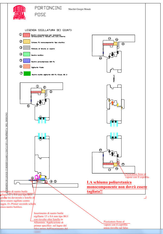 • Progetto di sostituzione dei serramenti con disegno di dettaglio per la messa in opera